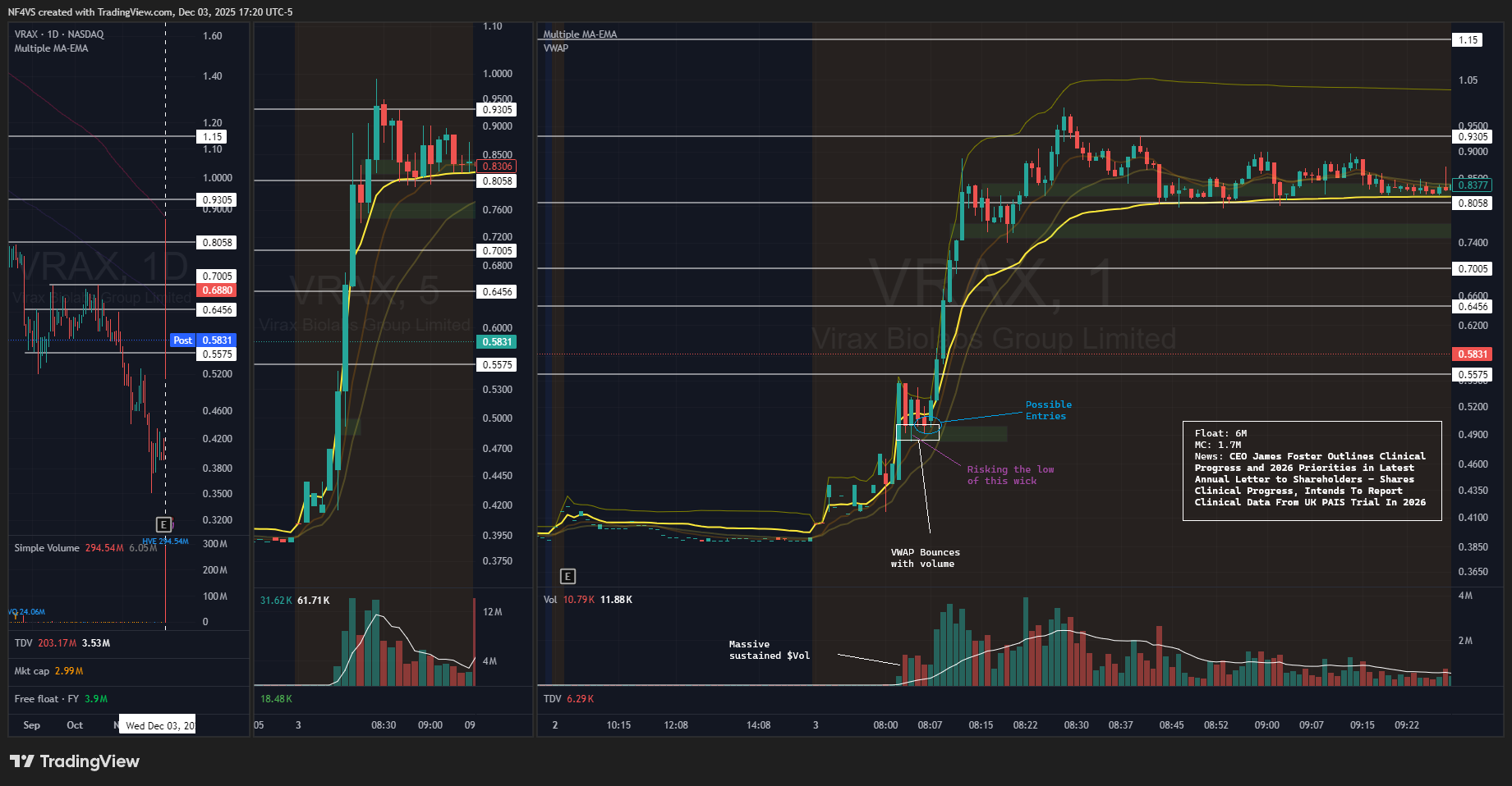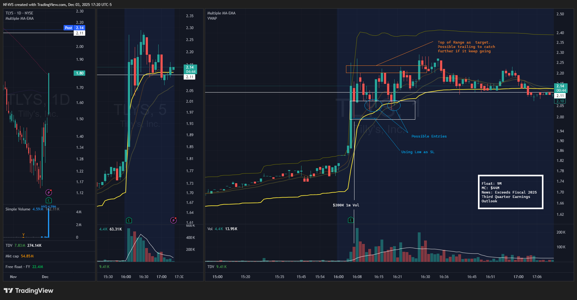 Due to the changing market, I have been focusing on PM moves and Midday Runners. That said, it does feel like the small cap market may be shifting for the better, with the robotics and squeezes that have been occurring more often. Only time will tell but in the meantime, expanding the playbook is a good route to take currently.
