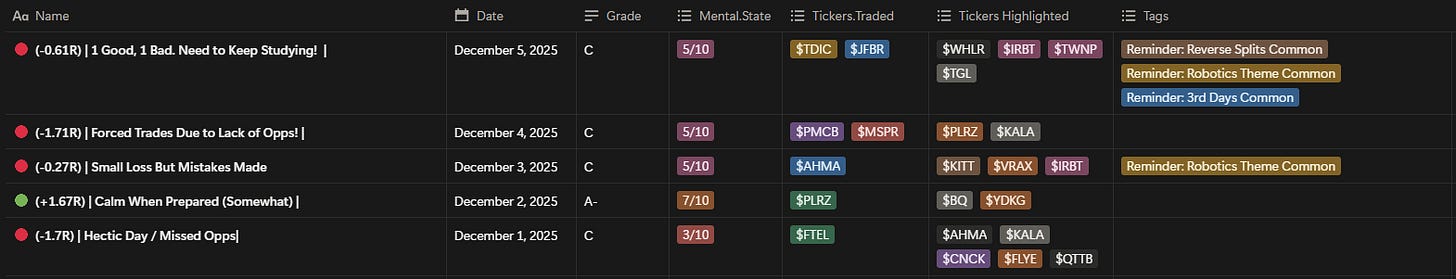 Performance: Dec 1-5 2025 (-2.61.R) - Let's Do Some Studying